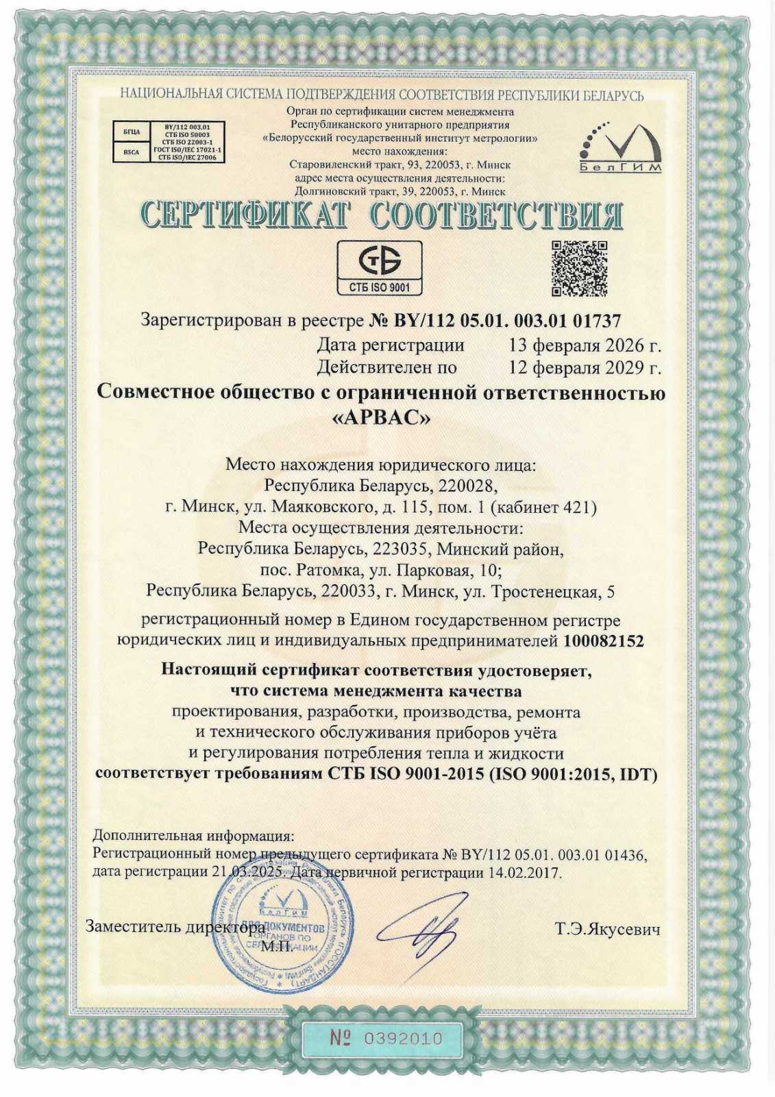 Сертификат СТБ ISO 9001-2015 picture_as_pdf